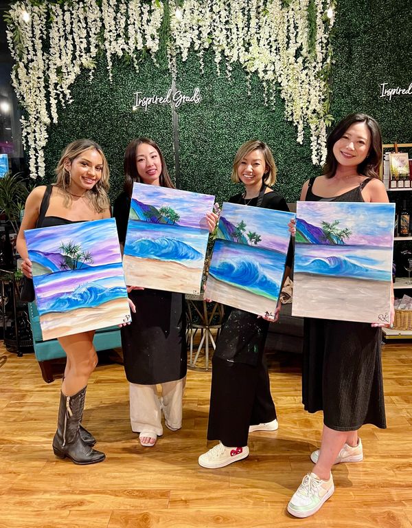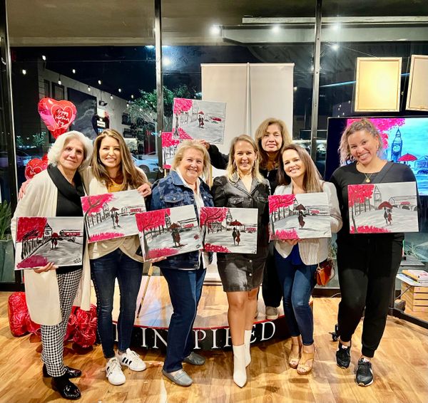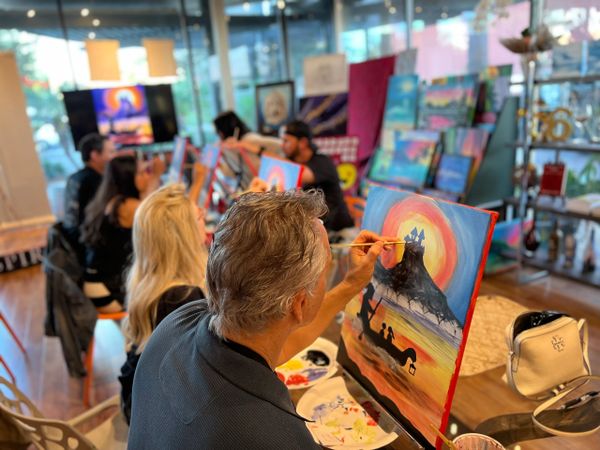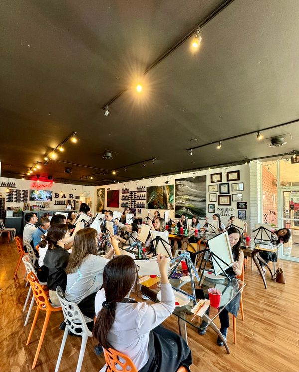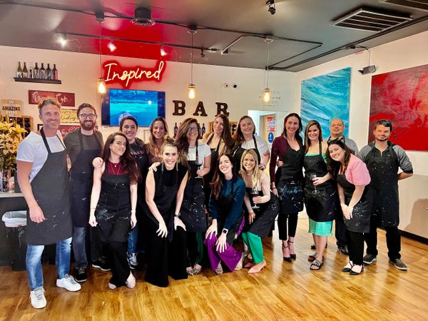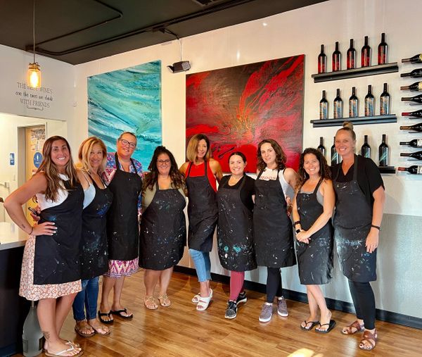 Whether you're joining us for a painting or wine class, no experience is required, just a great attitude! Choose from our events calendar filled with landscapes, figurative, contemporary, seasonal paintings, pet portraits and wine tasting/blending classes. Interested in hosting a private event? All our events are fully customizable and great for a variety of group sizes and artistic backgrounds. Come with family, friends, loved ones, colleagues or by yourself-- we promise to educate, entertain and inspire you!