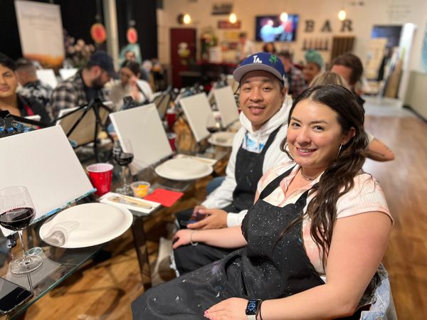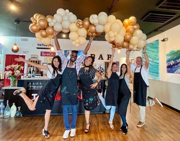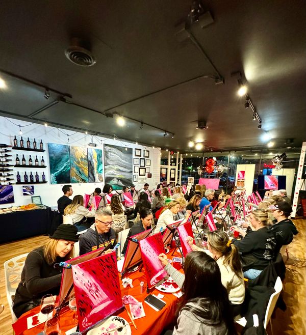 We're an art studio, wine bar and gallery paired with top-notch instruction (35,000+ students and counting since 2016!) and the highest rated paint sip company in California, located in Costa Mesa, City of the Arts. We are also the only art studio and wine bar to offer acrylic, oil and watercolor painting in one place.
