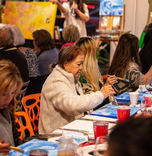The atmosphere is laid back; it's all about having a great time. Who knows, after sipping your favorite vintage and enjoying good music, by the night's end, you might call yourself the next Picasso! Come with your friends, family, partner, colleague or by yourself. For less than the price of a mani/pedi, you leave with a personal keepsake masterpiece while fostering deeper connections with other guests. Whether it's our step-by-step painting or wine educational classes, our events are geared for all levels.